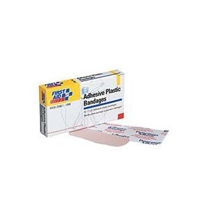 Product Description : First Aid OnlyTM Plastic Adhesive Bandages,1 x 3, 160 per PackRefill of bandages for ANSI-compliant first aid kit/cabinets. Global Product Type: Bandages-Standard; Bandages Type: Standard; Material(s): Plastic; Mounting: With Adhesive.