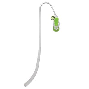 Category: Office Products Vendor: Silver Plated Charm and Bookmark with Swarovski Crystal Drop Hand Enamelled Charm Product Description : Silver Plated Charm Bookmark with Silver Plated Flip Flop Lime Green with flower with Peridot Swarovski Drop