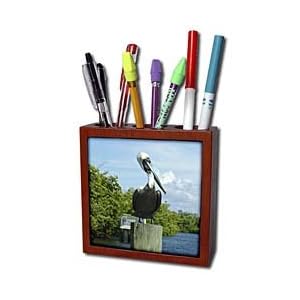 Product Description : Pelican Perch Tile Pen Holder is great on a desk or counter top. Made of high quality solid wood with a satin finish. Image displayed on one inset high gloss 4.25" x 4.25" ceramic tile. Overall size is 5" x 5" x 1 2/3" with 3- 1 1/3" top holes.