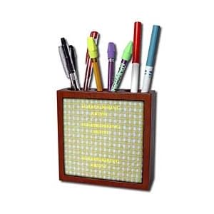 Product Description : Scrapbooking Artist Tile Pen Holder is great on a desk or counter top. Made of high quality solid wood with a satin finish. Image displayed on one inset high gloss 4.25" x 4.25" ceramic tile. Overall size is 5" x 5" x 1 2/3" with 3- 1 1/3" top holes.