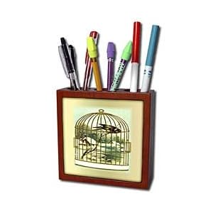 Product Description : Bird In A Gilded Cage Tile Pen Holder is measuring 5w x 5h x 2d. Made from high quality solid mahogany wood with satin finish and one 4.25 commercial grade mirror gloss ceramic tile. Looks great on a desk or counter top with a full color custom imaged tile.